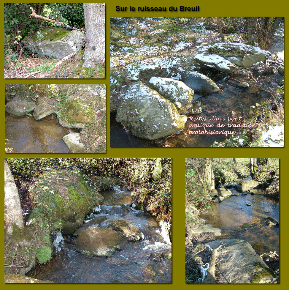 Après la route un chêne rabougri chaussé de ronces et d'orties montre en période humide le départ d'un ruissellement d'eau vers le fond de la vallée. C'est le site de Pramounier. On enjambe alors le ruisseau, une simple rigole d'eau courante bordée de grosses pierres, face à un buisson de houx. La remontée de pente en rive droite du ruisseau, débute par un énorme bloc fracturé. Un autre bloc affleure à proximité, fortement engagé dans la terre d'alluvions. La poursuite de la voie en droite ligne vers Verneuil ne fait pas mystère. C'est alors que revenant vers le ruisseau, on découvre le lit, en amont du passage, encombré de blocs énormes : les premiers d'ailleurs s'organisent en un reste de pont rustique fortement dégradé : la facture est protohistorique mais l'aménagement s'est assurément perpétué longtemps. D'un bord à l'autre du petit cours d'eau de longues pierres reposent sur des culées toujours en place; il manque seulement deux travées pour que l'ossature du monument soit complète. Là-dessus d'autres pierres bouchant les interstices, pouvaient supporter des lits de blocs plus petits et finalement un galetage. Le tout permettait le passage de chariots. Des blocs plus puissants bordent le dispositif comme des parapets. Les embâcles accumulées sous cette chaussée causent un débordement quasi permanent qui affouille et démasque ainsi la solide armature de la berge. Mais pourquoi diable ce pont se trouve-il décalé de plus de 10 mètres de l'axe de la voie ?