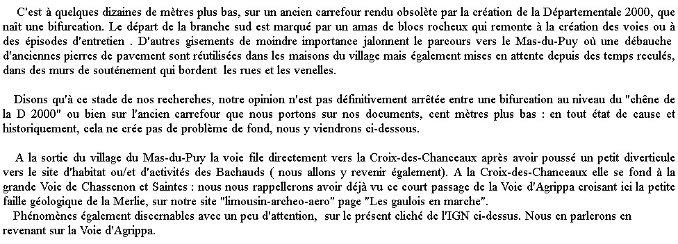 | Dans notre prochaine page "De la Vienne au Queyroi", nous rappellerons la convergence et la jonction de la Voie d'Agrippa avec cette voie venant des gués de La Roche. |