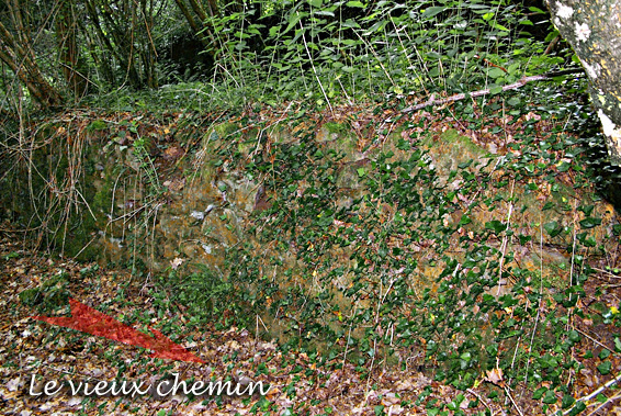là au XIXe siècle.Bien que colmatée à l'est venant de Verneuil, cette tranchée routière se montre au contraire bien conservée dans sa partie ouest. Bien conservée pour combien de temps ? Des déversements de terres pourraient assez rapidement la combler (photos de détail ci-dessous). |