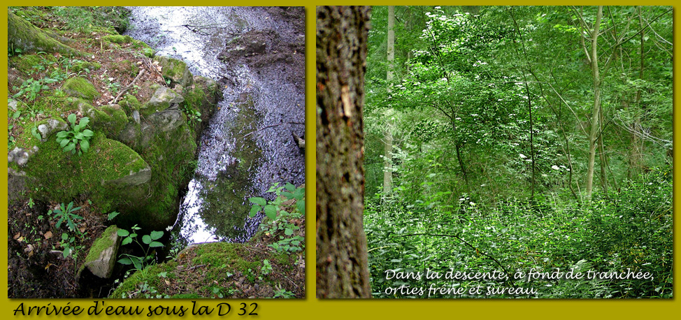 captage, une courte tranchée dévale la pente comme un raccourci par rapport à la
