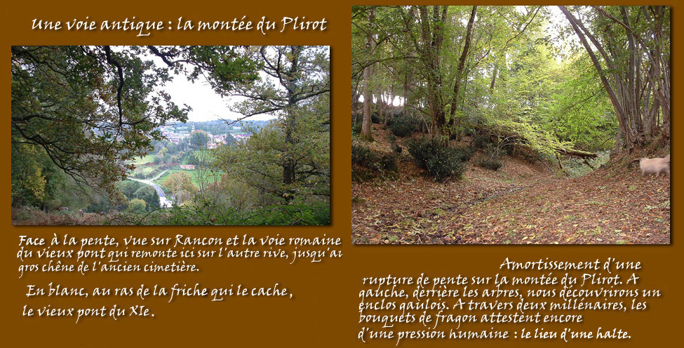 vieux pont actuel. Elle abordait alors immédiatement et en droite ligne, la forte montée antique du Plirot pour un parcours compliqué vers Magnac-Laval. |