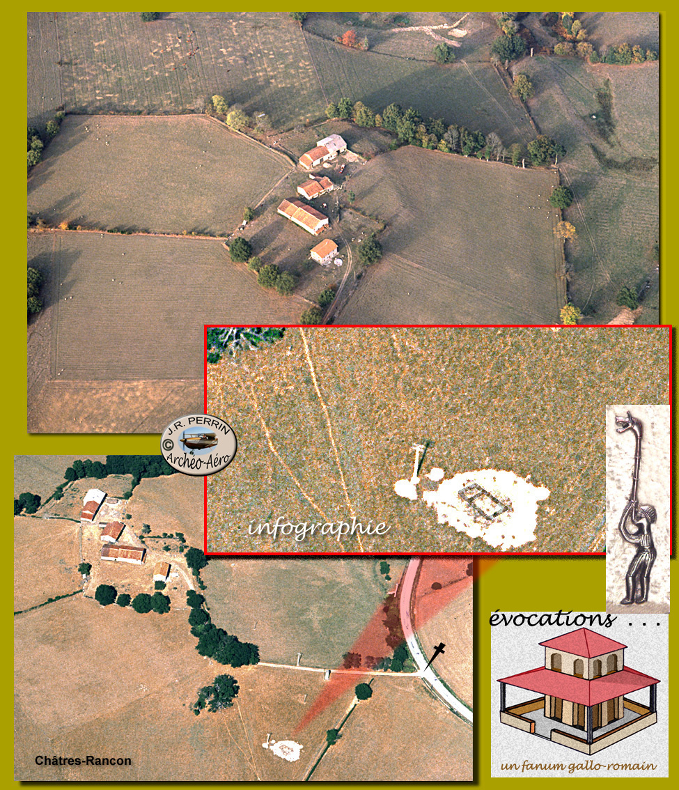 Nous terminerons ce court aperçu des structures protohistoriques et antiques sur le versant sud du bourg de la vallée de Rancon en signalant que notre enquête sur le territoire communal et ses alentours, a été menée sans idée préconçue. C'était simplement pour nous une occasion de chasser en terre giboyeuse comme le furent nos recherches sur l'oppidum de Villejoubert ou sur le terroir de Chassenon la romaine. Images récoltées à la volée, à l'aller comme au retour de missions plus lointaines voire au cours de simples promenades aériennes, jusqu'au au tout début de la décennie 1990. En 1992, nous n'étions déjà plus en mesure de mener une recherche aérienne d'envergure : l'entretien d'un avion et le coût des prises de vue relève d'un mécénat qui ne saurait se prolonger indéfiniment : nous venions de mettre un terme à 12 ans de vols en recherche aérienne archéologique. Ce n'est que lorsque notre vieux copain d'études Jean DUMET, ancien maire, intéressé depuis toujours par l'histoire de sa commune, manifesta de l'intérêt pour les techniques d'observation aérienne, que nous commençâmes à compiler un certain nombre de ces clichés. Restait donc à faire sur Rancon et son territoire communal l'enquête au sol sans laquelle les comptes-rendus des images aériennes ne sont que des orientations de recherche. Disparu prématurément Jean DUMET nous laissa seul face à cette tâche immense que nous avons cependant tenu à assumer sommairement et avec les documents dont nous disposions.