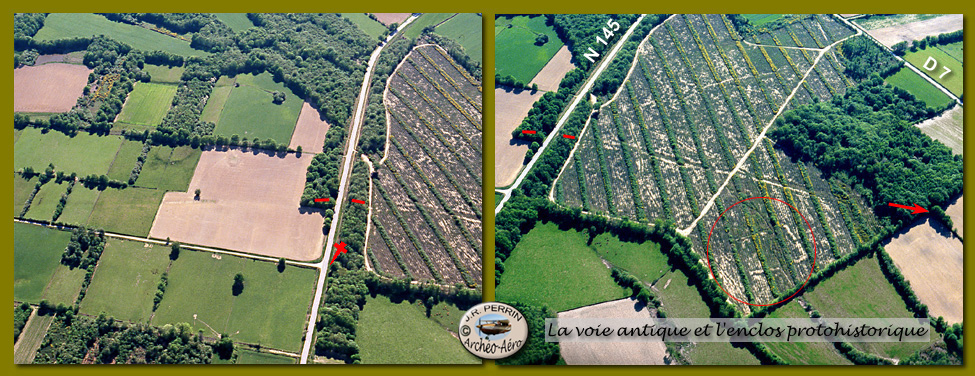 antique à partir de l'orientation de la tranchée routière précédant Villenue.