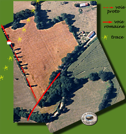 propices aux passages d'un champ à un autre. Selon nous, la justification antique de la trace repose sur sa largeur qui excède largement la voie d'un tracteur agricole et sur sa disparition au contact de parcelles existant à l'ancien cadastre de 1828 et qui avaient localement et depuis longtemps détruit cette très vieille route. La conservation des traces que nous observons, relève toujours d'un petit miracle ! |