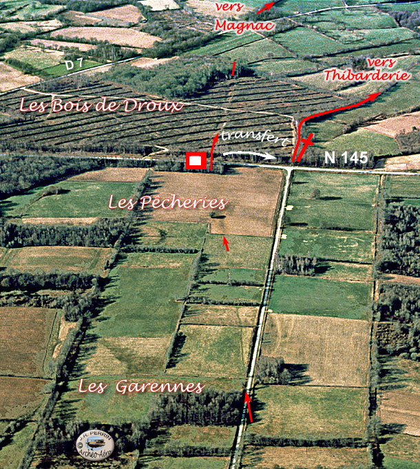 Mais le cliché IGN proposé par Google, est intéressant en ce qu'il permet une bonne évaluation de l'emprise totale totale du passage routier : approximativement 55 mètres entre limites "d'emprise administrative". De nos jours et toutes choses égales par ailleurs, on fait passer une 4 voies sur 30 mètres de largeur ! Nous ne ferons pas de commentaire sur ce sujet neuf, jamais vu ni même subodoré jusque-là en Limousin mais qui a déjà été reconnu et interprété par Roger AGACHE en Picardie, dans le sens que nous suggérons ci-dessus. On