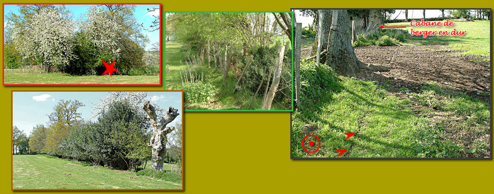 de la villa et descendant vers la Brame, le pied d'une haie présentait à intervalles rapprochés