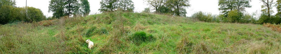 Un autre jour, nous avons décidé d'aborder le terre-plein de la villa gallo-romaine par le bas et nous avons passé l'eau au Moulin de La Vilatte (itinéraire jaune) et suivi des haies en montant la pente. Après un parcours de quelques centaines de mètres, une haie se doublait d'un ancien chemin et élément nouveau, des pierres de tout calibre étaient rejetées en marge du passage. En montant la pente, les pierres abandonnées augmentaient sensiblement de volume. Puis le chemin disparaissait et sur le cours de la haie qui le prolongeait, nous retrouvions les gros blocs repérés quelques jours auparavant.