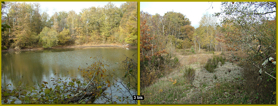 Précisément, la traversée des "adillères" - gisements d'argile ("ardil") - selon les vocables employés par les maçons marchois jusqu'à la première moitié du XXe siècle - au sol bouleversé par les excavations, réserve de beaux points de vue en période humide. Lichens et genêts au passage de la voie (photos 3 bis). |