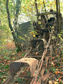 | Et puis, abandonnée dans les champs d'argile, l'épave d'une "haveuse" à godets, parce que c'est aussi de l'histoire et parce qu'elle était là. |