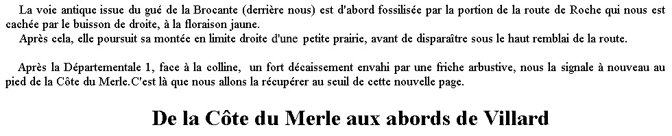 Aussi nous ne pouvons écarter l'idée que la voie d'origine serait celle encore marquée par les traces de scories ferrugineuses (flèches rouges). Le passage ondoyant au plus près du ruisseau (tracé jaune), serait alors un itinéraire postérieur, construit ou créé par l'usage, un diverticule destiné à libérer les hautes terres, plus propices à la culture. |