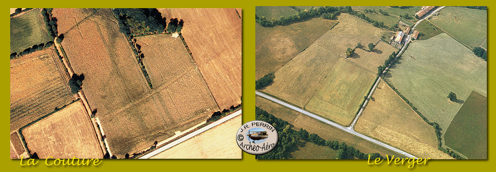 Enfin ces espaces frontaliers entre peuples de l'Age du Fer (Lémovices, Bituriges et Pictons), situés sur des zones de contact géologiques entre les vieilles roches hercyniennes du Massif-Central et les roches sédimentaires du Poitou, ont vu se perpétuer au cours du temps une activité sidérurgique artisanale alimentée tant par des minerais de surface que par le charbon des forêts d'alentour. Dans la page "gaulois et gallo romains.html" de notre site "limousin-archeo-aero.fr" nous avons fait état d'une récolte fortuite de minerai sous la forme de gros nodules d'un poudingue ferrugineux dénommé autrefois "bétain", sur des terres de lande gorgées d'eau, dans deux communes de Haute-Vienne, aux confins du Poitou. Ici, un petit enclos carré figure au milieu de la zone d'activités. Une zone, les Cribledis ( les terres criblées de ... taches, de trous ?) terme issu de l'ancien dialecte local, comme l'aigadis, le renfermedis, le plantadis . . . Mais il en existe d'autres que la couverture photographique IGN nous démasque et d'autres encore que la toponymie nous suggère. |