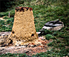 Nous croyons savoir que les premiers bas-fourneaux de la protohistoire étaient démolis dès la fin de la première chauffe pour récupérer la loupe de fer fondu, prisonnière des scories . Et l'on rebâtissait un nouveau fourneau . . . Dans d'autres contrées, des signes semblables dans les labours ou les cultures ont pu être interprétés comme des excavations dans le calcaire pour rechercher les rognons de silex d'où l'on tirait les premiers outils des Ages de Pierre. Mais ici, les scories rouges des très vieilles routes voisines de Chaillac, infirment cette option. |